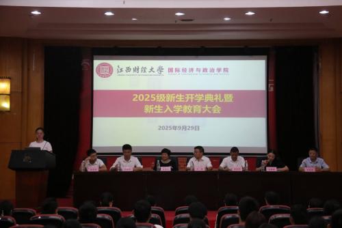 9月29日上午,江西财经大学体育投注网站 2025级开学典礼在蛟桥园国际学术报告厅隆重举行。院长刘建,党委书记廖勇勇,贸易与环境研究中心李秀香教授,党委副书记马李琛,副院长王树柏,副院长罗春香,博士生导师蒋含明,国贸系主任范冬梅,电商系主任宋慧琳,国合系主任戴明辉,学工办主任苗翠琴,团委书记周妍,辅导员吴梦,25级班主任及助理班主任共同出席,与全体2025级新生齐聚一堂,开启大学新篇章。典礼由马李琛主持。