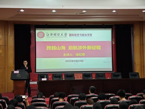 深圳市行云集团合伙人、副总裁汤红顺校友围绕“跨越山海,启航涉外新征程”这一主题,深情回望江财岁月,勉励学院新生:锚定目标,追随良师,并分享了其在跨境出海与人工智能领域的宝贵经验,期待大家在未来书写属于新国际经政人的世界故事。两位嘉宾均对新生表达了真挚的祝福。