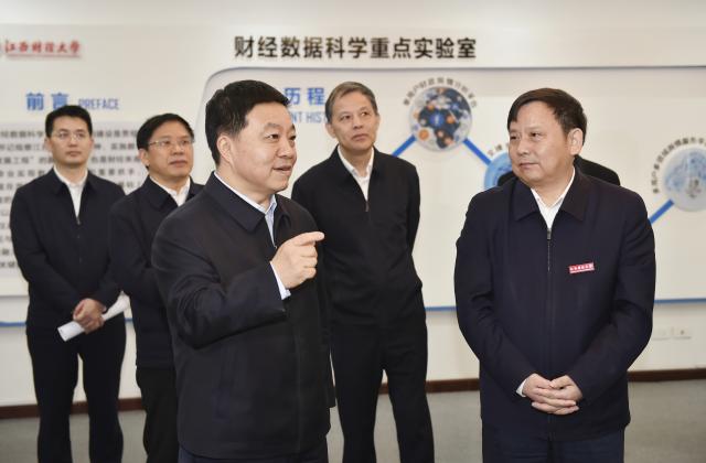 省政府秘书长、办公厅主任王国强,省政府副秘书长、研究室主任李能,省发改委主任张和平,省教育厅厅长郭杰忠,省工信厅厅长杨贵平,省财政厅厅长朱斌,省农业农村厅厅长江枝英,省商务厅厅长谢一平,省发改委副主任李光东,校领导卢福财、邓辉、龚剑飞、袁红林和相关单位负责人、专家学者陪同调研。