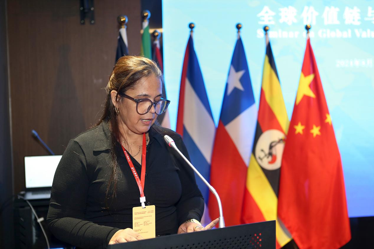 Ms.MARIELA, who works in the Ministry of Foreign Trade and Foreign Investment of Cuba, delivered a speech as the representative of the trainees. She expressed her great honor to attend this seminar and thanked Jiangxi University of Finance and Economics for its warm reception. She believes that this seminar will not only promote the friendship, exchanges and cooperation between the Chinese country and China, but also learn from China's valuable experience in developing and building a green industrial chain. She will also share what she has learned in the workshop with her domestic colleagues and apply it to their respective work, so as to have a practical impact and contribute to enhancing the friendship and cooperation with China.