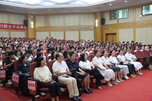 学生代表董思琦结合自身经历,分享了对大学生活的感悟,鼓励新生勇于试错、突破自我,在遵守规则中笃定前行,让大学时光充实而滚烫;新生代表吴榆婷在发言中,号召同学们主动交流思想、踏实学习本领,将个人成长融入时代发展,以所学知识服务社会、贡献青春力量。