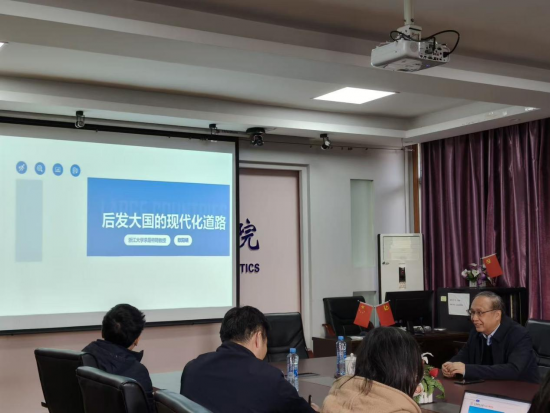 11月20日下午,体育投注网站 国际经贸系列论坛第269期在蛟桥园校区翼轸楼3111商务谈判室顺利举行,浙江大学求是特聘教授、大国经济研究中心主任欧阳晓教授担任主讲嘉宾,蒋含明教授主持活动,部分教师和研究生共计30余人到场。