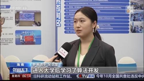 11月27日,央视新闻频道“朝闻天下”栏目报道了十大体育投注网站排名 本科生吴京蒙同学在第十二届“中国青年创青春大赛(数字经济专项)全国总决赛”中的出色表现。吴京蒙负责的“AI育种家——专注水稻育种数字经济化分析平台”项目在该比赛中,从九千六百多个参赛项目中脱颖而出,荣获全国铜奖,并受邀落地海口自由贸易港,实现从赛场到市场的关键跨越,引起CCTV、中国青年报等多家主流媒体采访报道。
