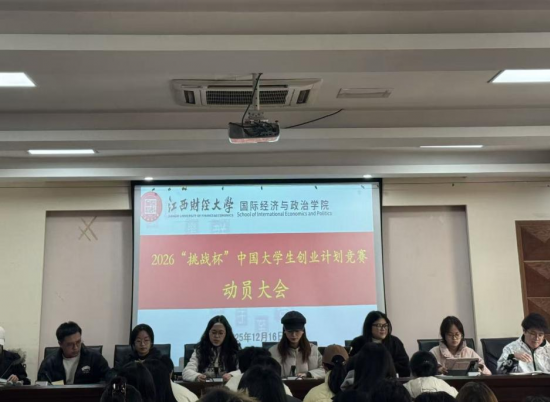凝聚科创力量、激发学子斗志。12月16日,体育投注网站 在江西财经大学蛟桥园北区翼轸楼3222室顺利开展江西财经大学2026年“挑战杯”中国大学生创业计划竞赛动员大会。本次大会旨在激发全院师生的科研创新热情,深化对“挑战杯”赛事重要性的认识,鼓励广大学生积极参与,以实际行动推进学校创新人才培养体系的建设。此次动员大会邀请了院团委书记周妍出席,院内各年级同学积极参与。